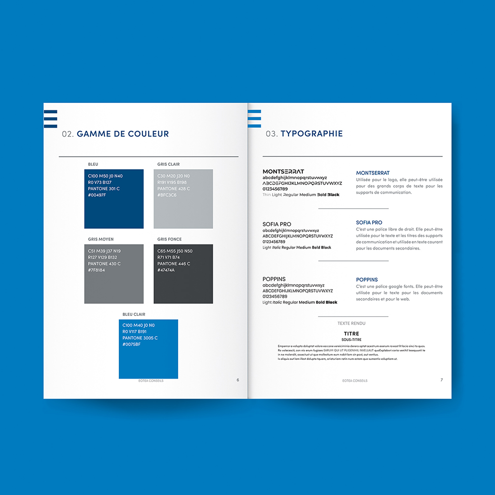 La charte graphique* proposée permettra de vous aider pour l’utilisation de votre logo et de votre identité visuelle.